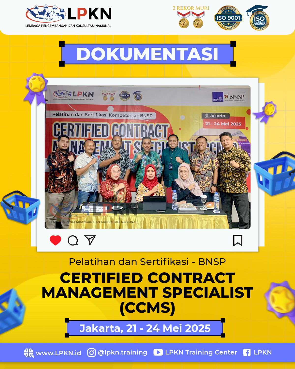 Jakarta, 24 Mei 2025 — Lembaga Pengembangan dan Konsultasi Nasional (LPKN) kembali menyelenggarakan kegiatan unggulan dalam bidang pengadaan barang/jasa dengan tajuk Pelatihan dan Sertifikasi Kompetensi Pengadaan Barang/Jasa - Certified Contract Management Specialist (CCMS) yang berlangsung secara intensif mulai 13 hingga 24 Mei 2025. Kegiatan ini diikuti oleh puluhan peserta dari berbagai instansi pemerintah dan swasta yang antusias meningkatkan kompetensinya di bidang manajemen kontrak pengadaan.